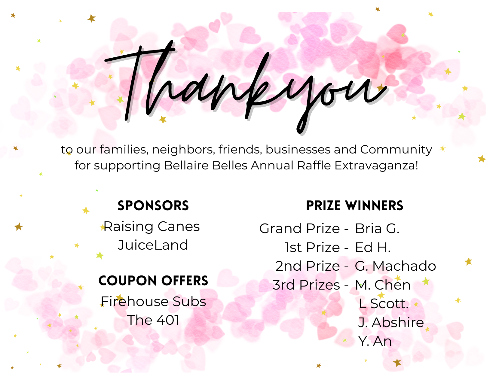 The Bellaire Belles Booster Club needs a little extra help throughout the year to make it an AMAZING year and everyone’s help is worth its weight in gold. Please click the button below to complete the Belles Parent Volunteer Form and return to the Belles office.