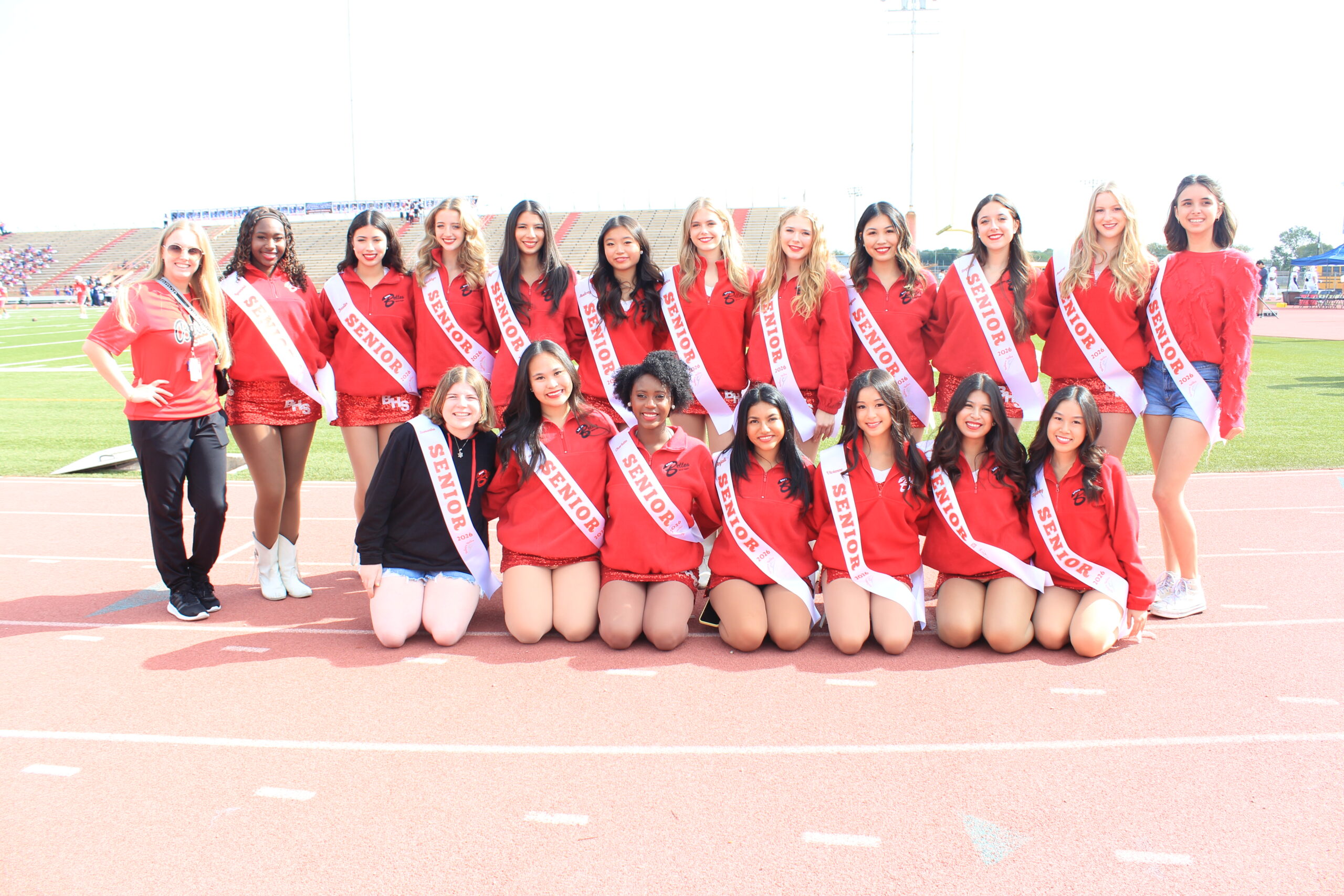 The Bellaire Belles serve and represent Bellaire High School and the local community by performing at football and basketball games, participating in competitions, and performing and volunteering at school and community events. Dancers learn teamwork, build strong positive attitudes, improve their personal fitness level, and form long-lasting friendships. Belles are taught dance technique and a variety of dances styles, including pom, kick, hip hop, jazz, lyrical, contemporary, military, and novelty. During the spring semester, Belles participate in competitions and our annual Spring Show. The Belles are one of the top dance teams in the Houston Independent School District and have received numerous awards at competitions.